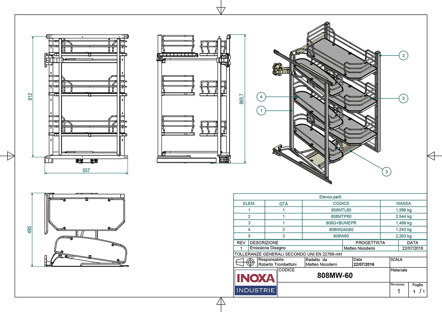 主頁五金配件(Hardware)拉趟架INOXADE LUXE高身(前後)拉籃 808前後拉籃 808MW/60