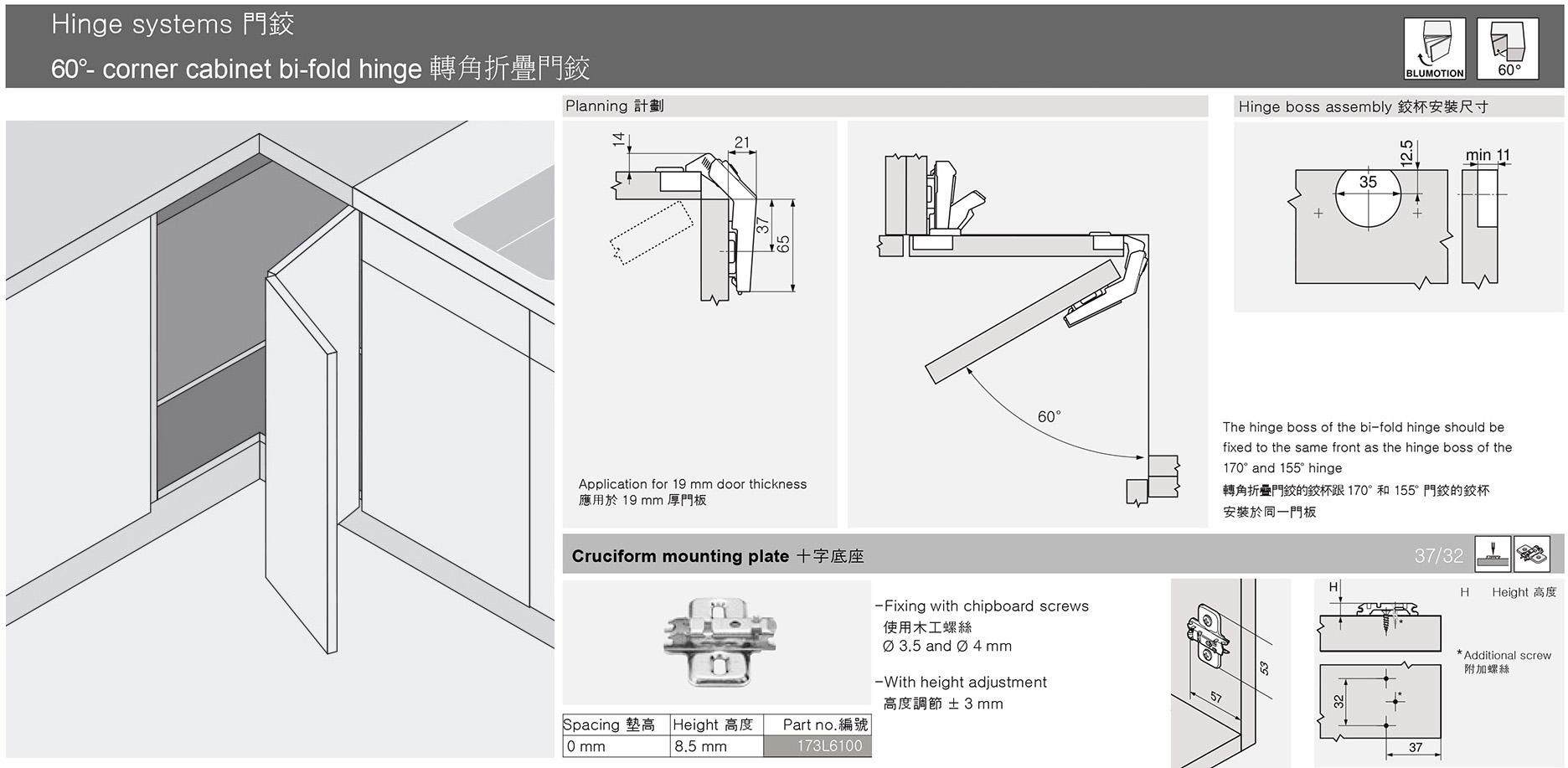 60° 轉角折疊-門鉸 - Corner cabinet bi-fold hinge