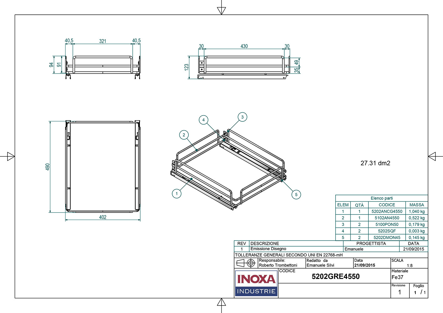 主頁五金配件(Hardware)拉趟架INOXAELLITE抽屜式拉籃 5202E抽屜式拉籃 5202E/45-50
