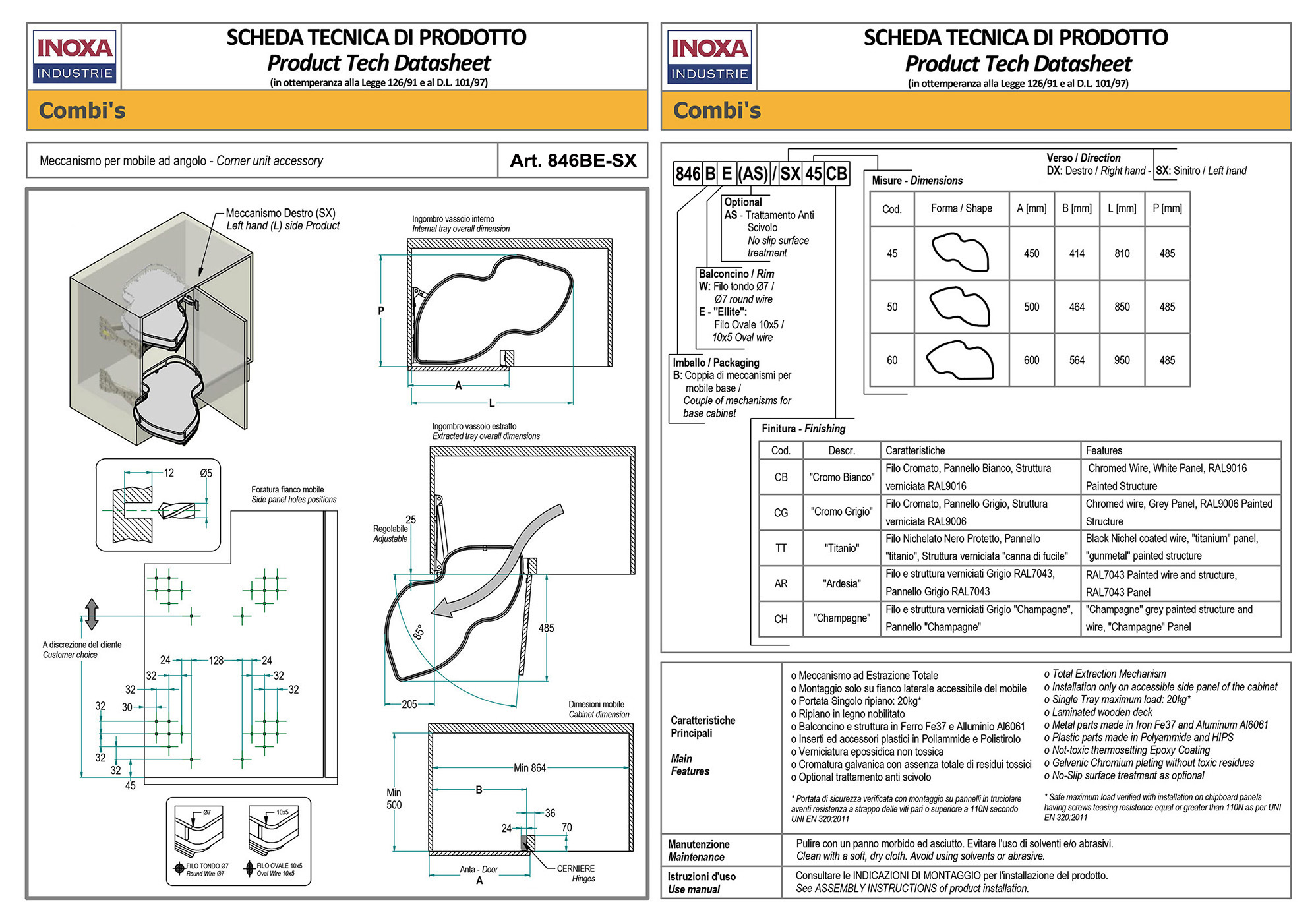 主頁五金配件(Hardware)拉趟架INOXAELLITE地櫃角位花生籃 846BE地櫃角位花生籃(左拉出) 846BE/SX60