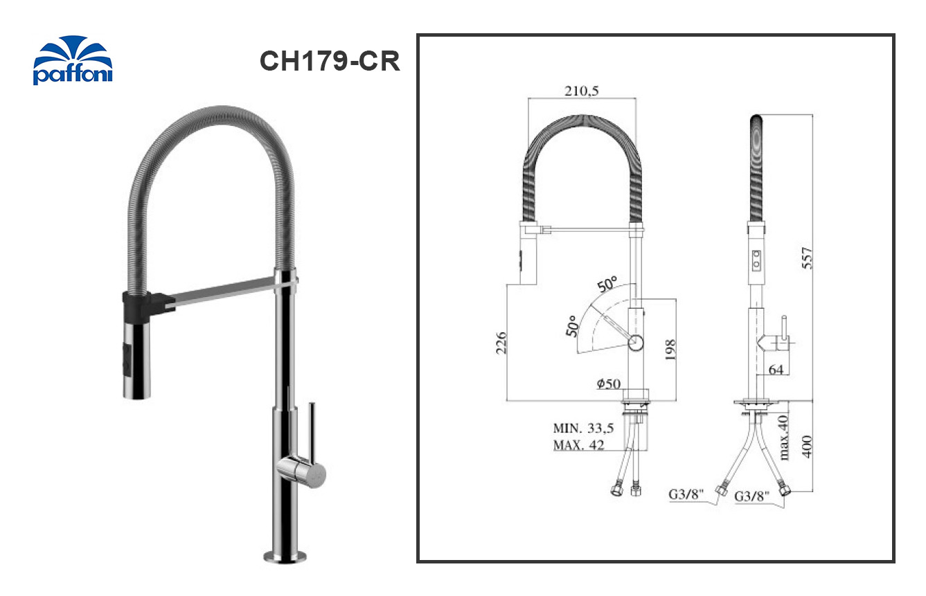 水龍頭 CH179-CR - Chef one-hole Professional sink mixer with spray