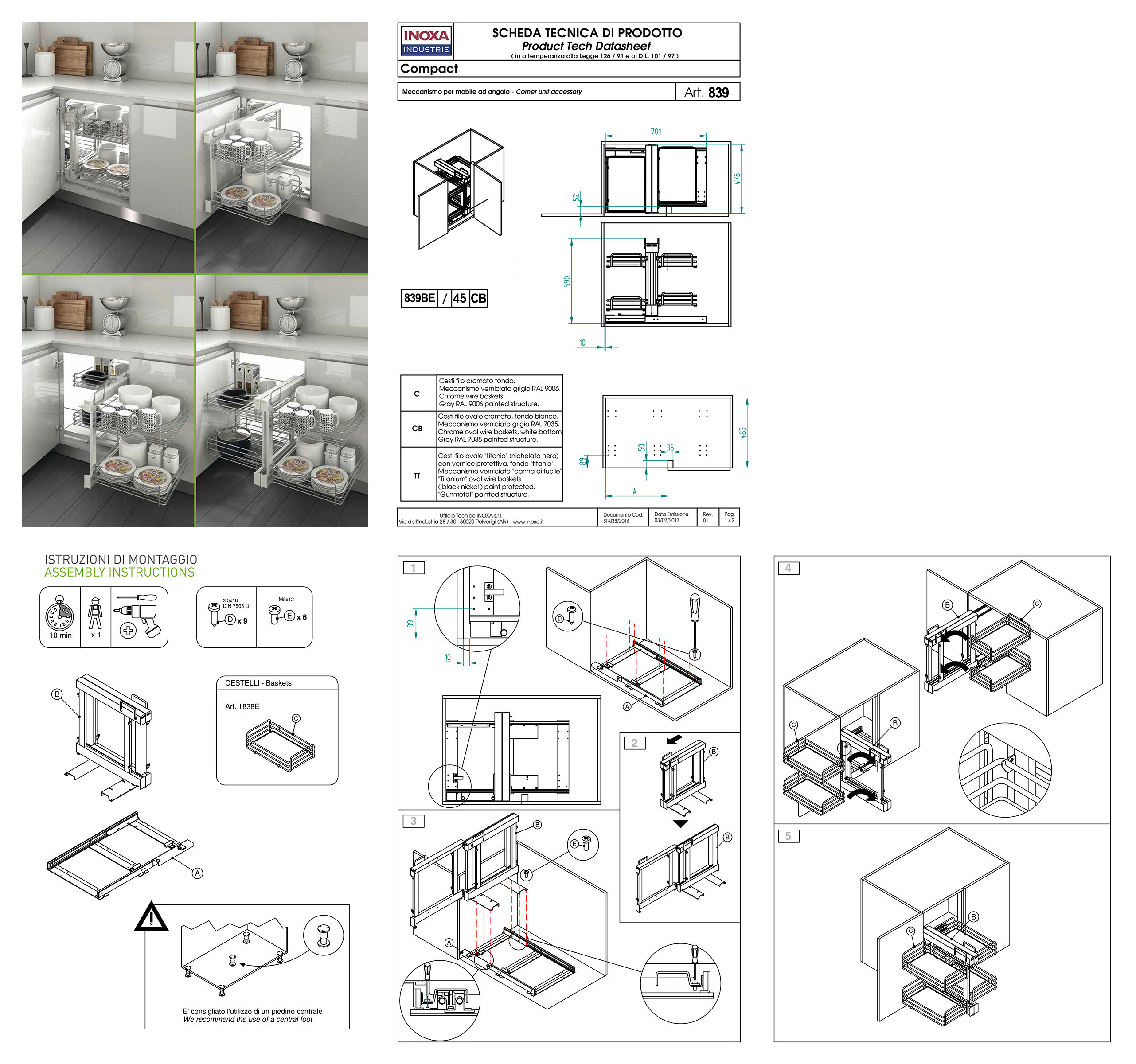 主頁五金配件(Hardware)拉趟架INOXAELLITE地櫃角位全出拉籃839BE角位全出拉籃 839BE/60