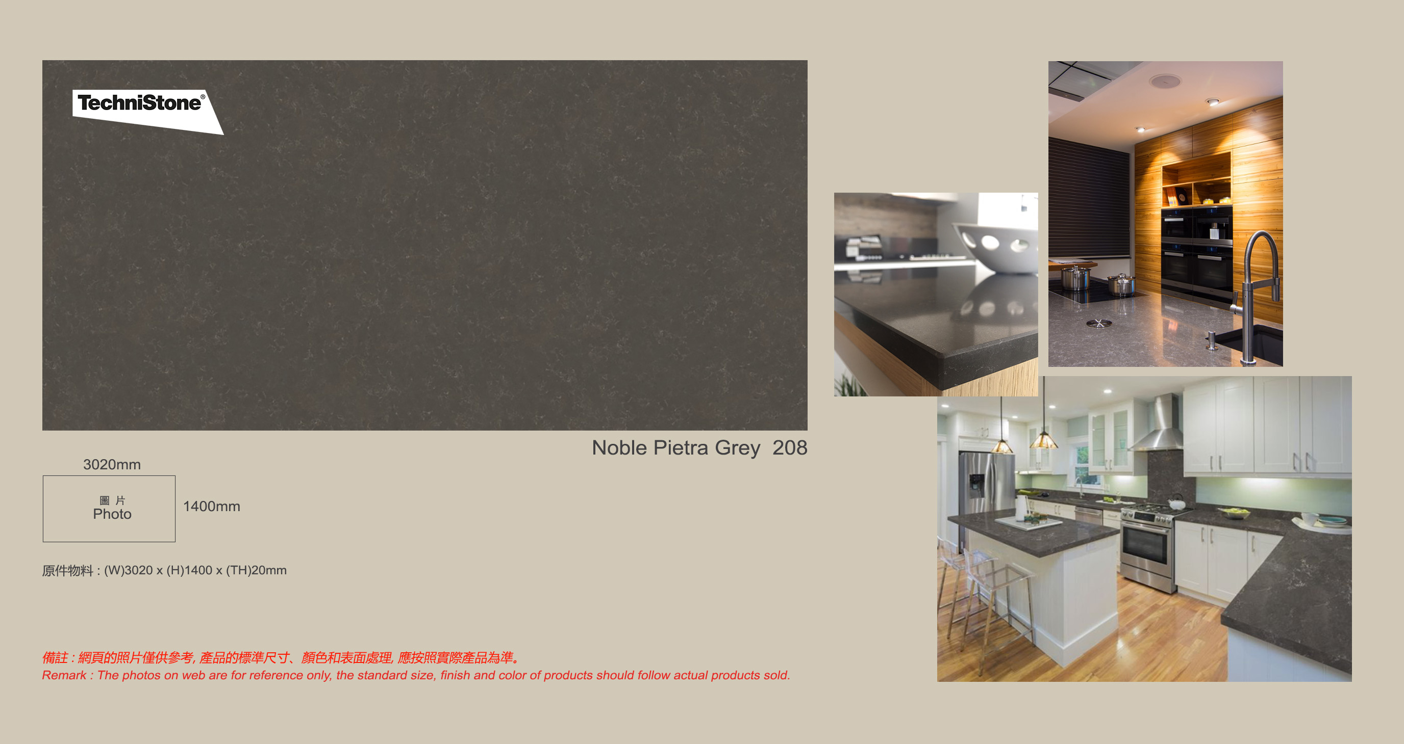 主頁石材製品(Stone)石英石TechniStoneNoble Pietra Grey 208Noble Pietra Grey 208