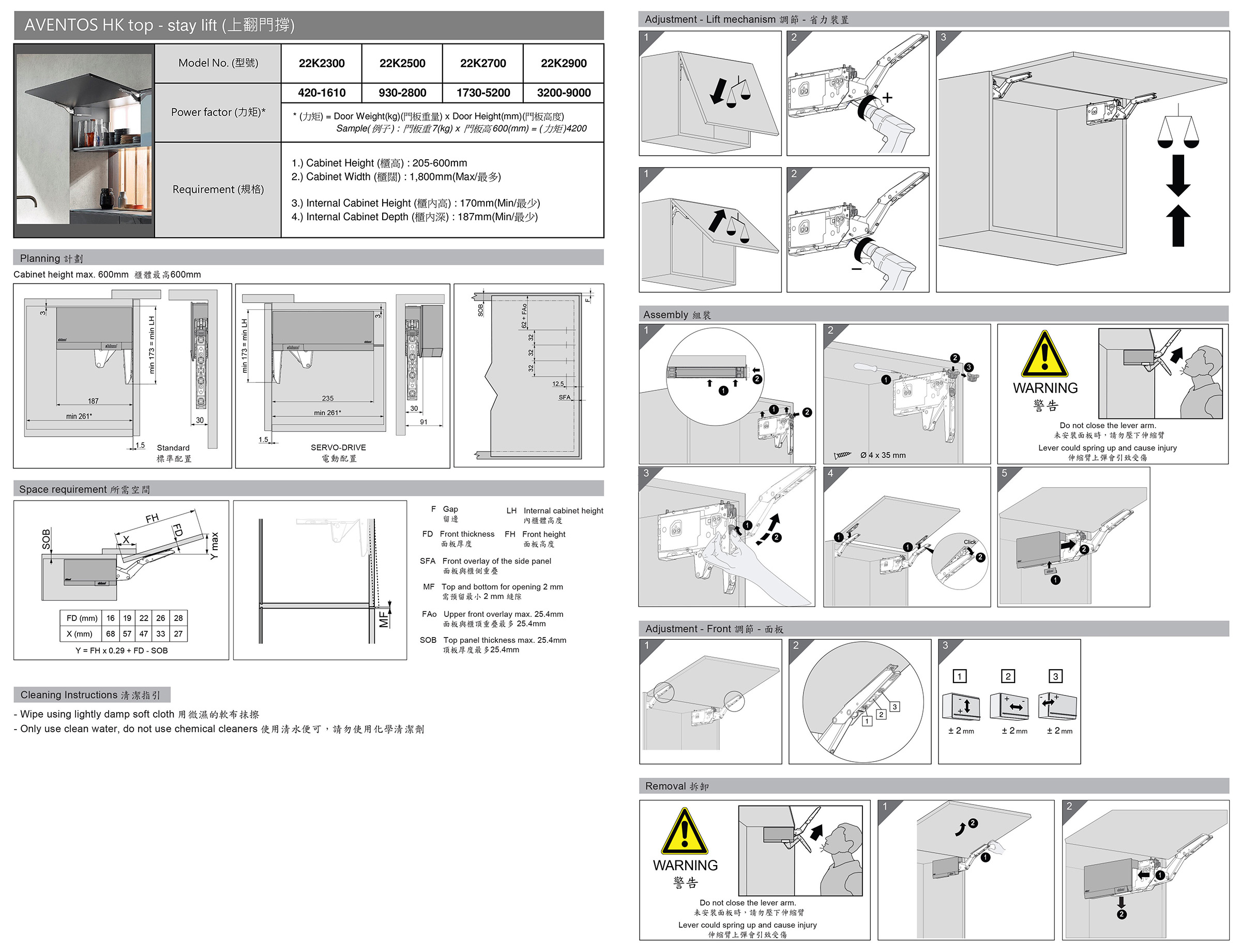主頁五金配件(Hardware)上翻門撐HK TOP 上翻門撐AVENTOS HK TOP 上翻門撐 22K2700