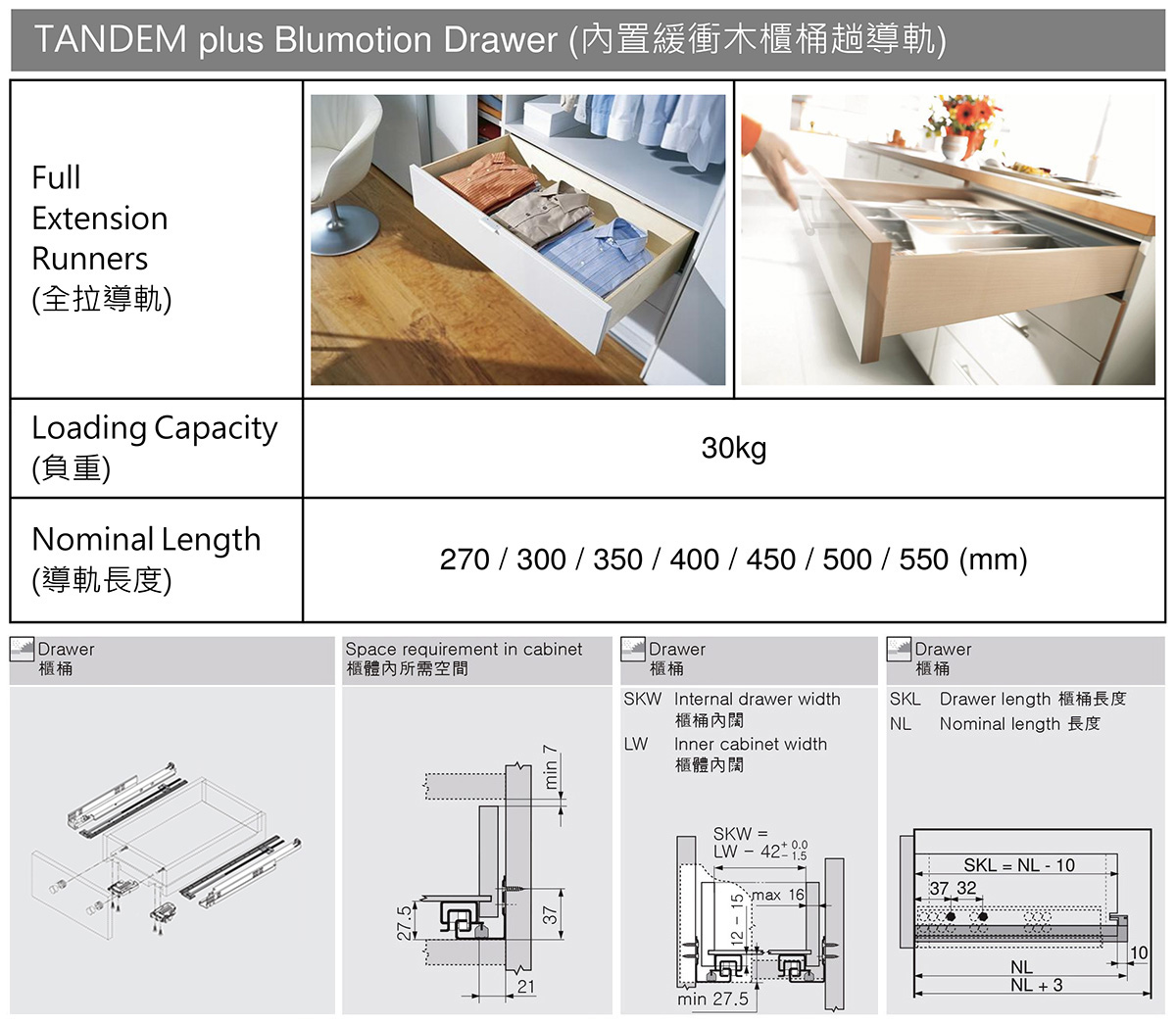 木櫃桶緩衝路軌(L400) - Tandem plus Blumotion(L400)