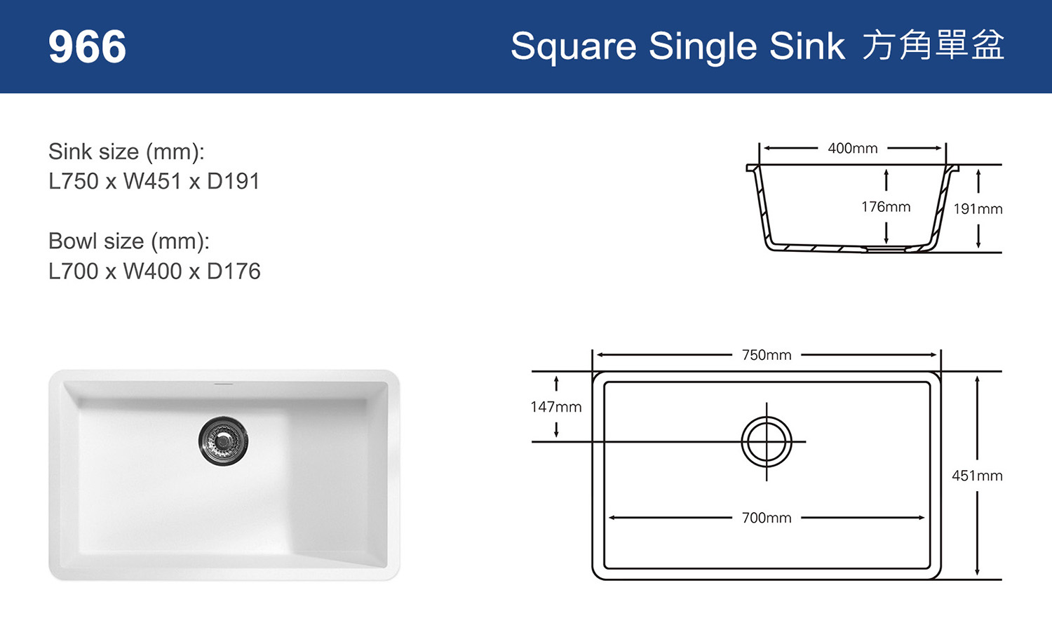 主頁石材製品(Stone)無縫石Corian廚房鋅盆966