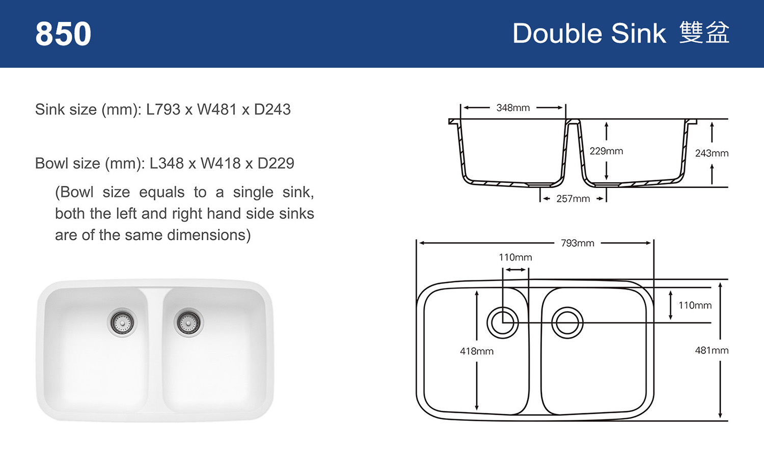 主頁石材製品(Stone)無縫石Corian廚房鋅盆850