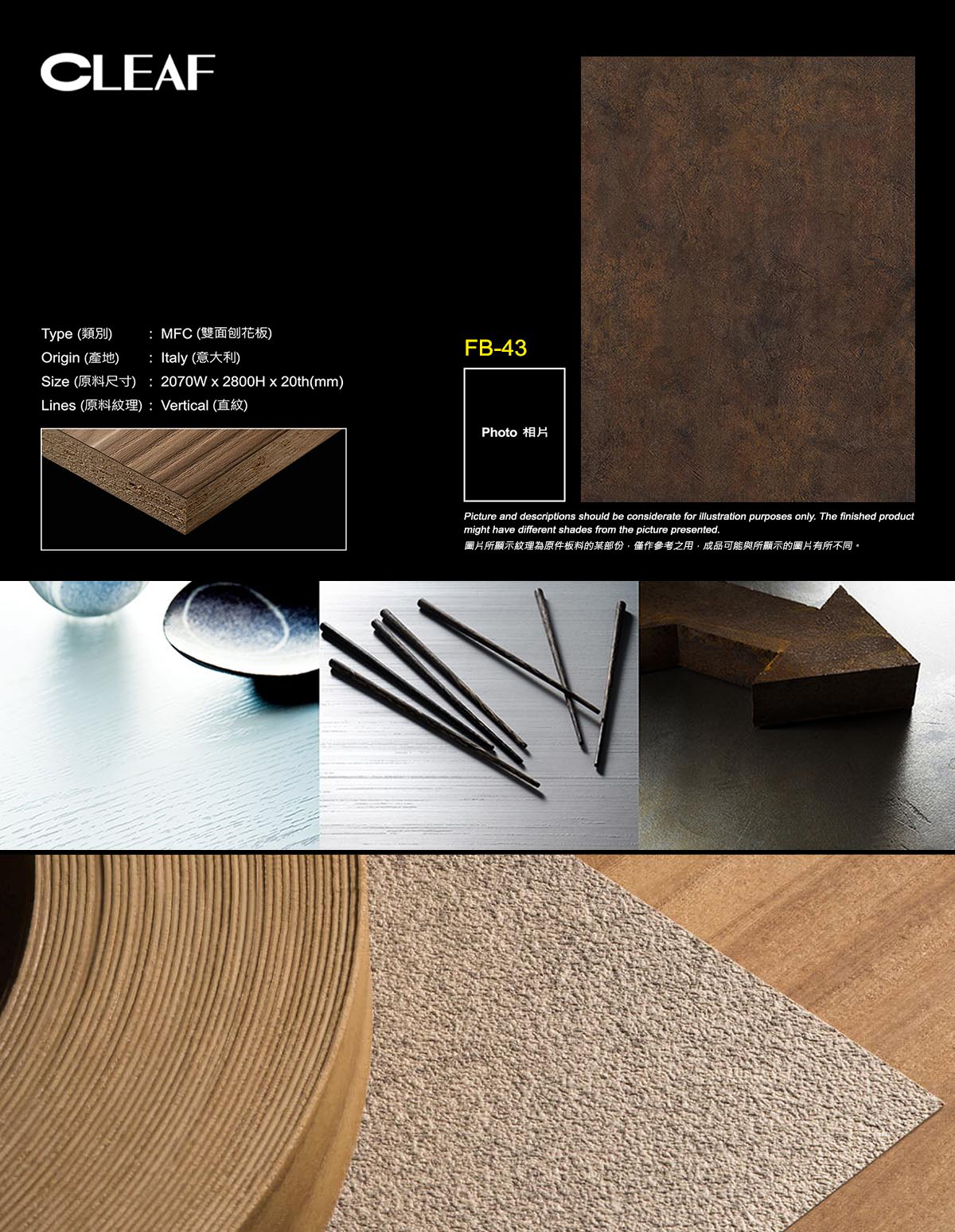 主頁飾面物料(Finishing)傢具門板Cleaf FB-43