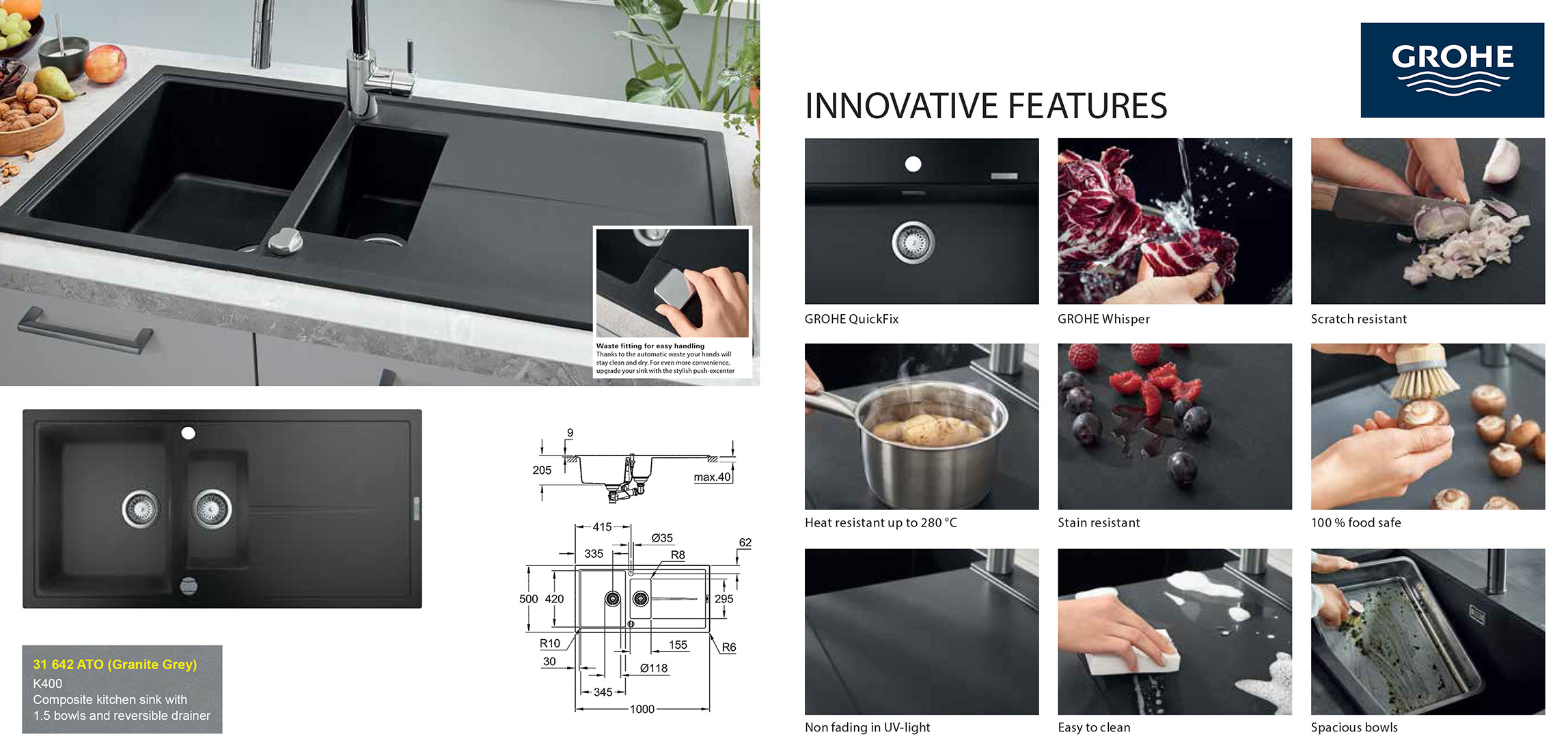 主頁鋅盆/水龍頭(Sink Faucet)花崗石-鋅盆Grohe31 642 (K400)雙鋅盆 31 642 (K400)