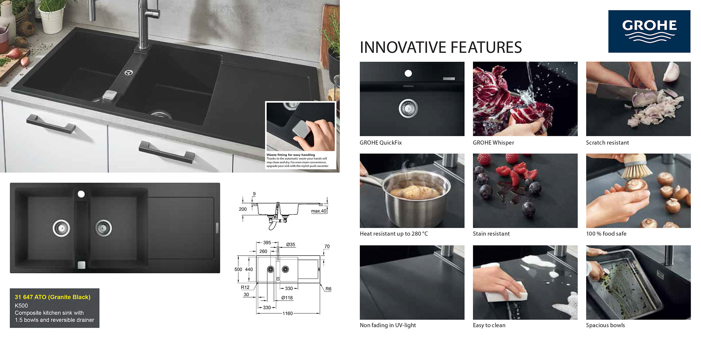 主頁鋅盆/水龍頭(Sink Faucet)花崗石-鋅盆Grohe31 647 (K500)雙鋅盆 31 647 (K500)