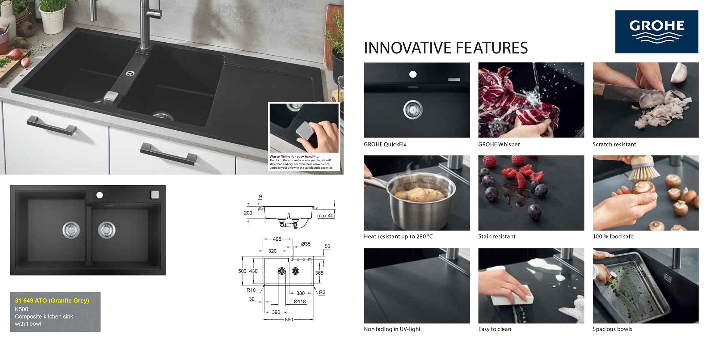 主頁鋅盆/水龍頭(Sink Faucet)花崗石-鋅盆Grohe31 649 (K500)雙鋅盆 31 649 (K500)