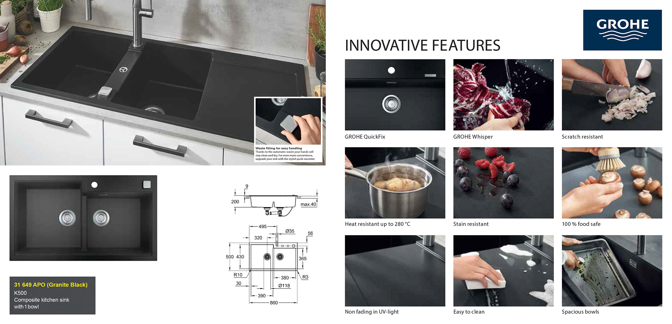 主頁鋅盆/水龍頭(Sink Faucet)花崗石-鋅盆Grohe31 649 (K500)雙鋅盆 31 649 (K500)