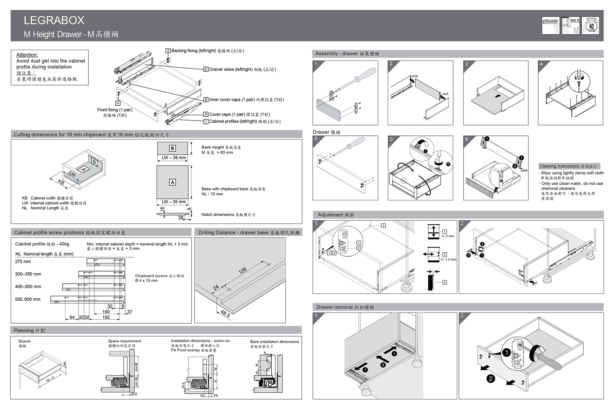 LEGRABOX 緩衝櫃桶趟路 (M高) - 400mm - M Height (40Kg)
