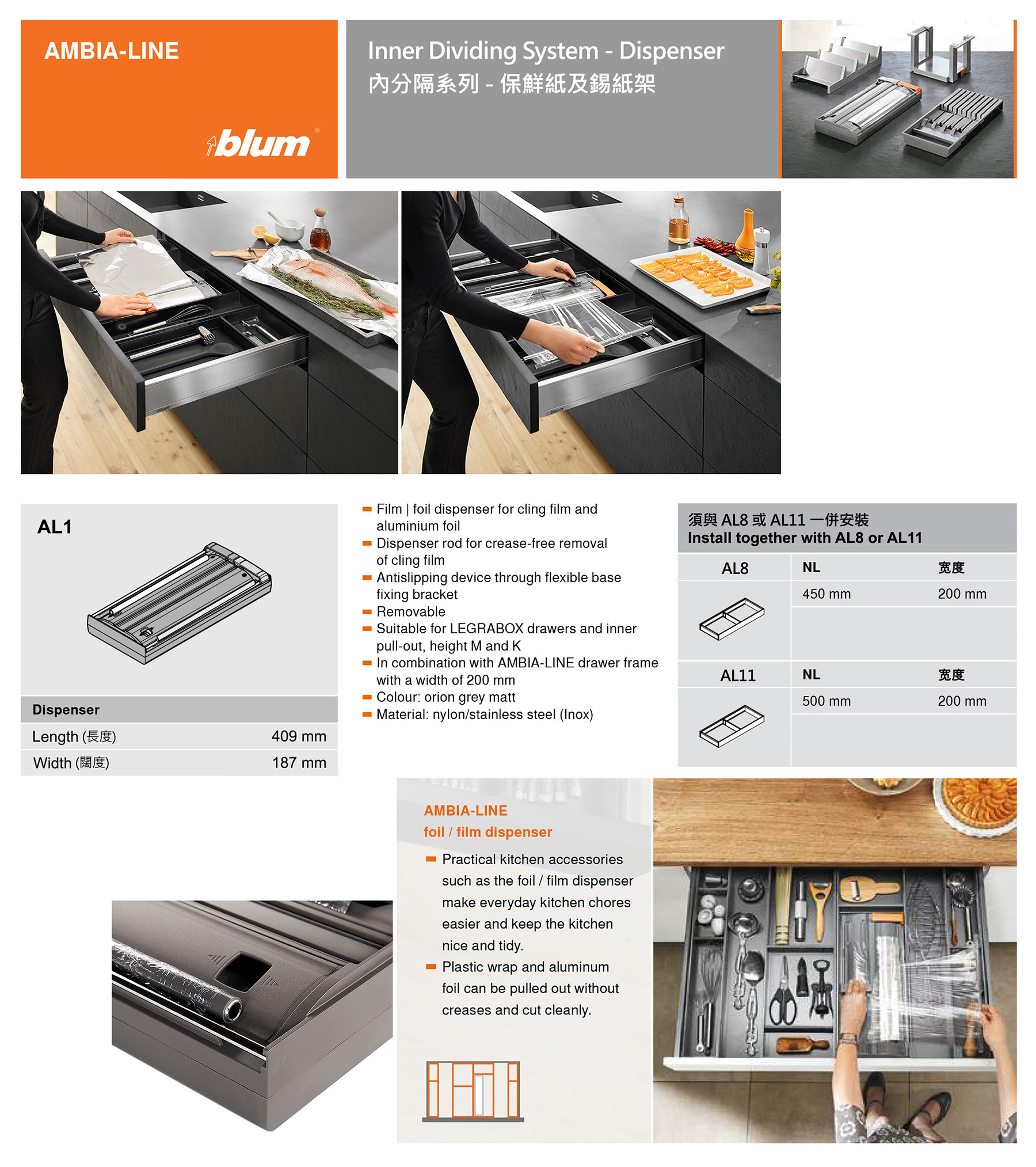 主頁五金配件(Hardware)櫃桶路軌"金屬"側板櫃桶路軌AMBIA-LINE 內分隔系列 AL1 - Film & foil Dispenser (保鮮紙及錫紙架)