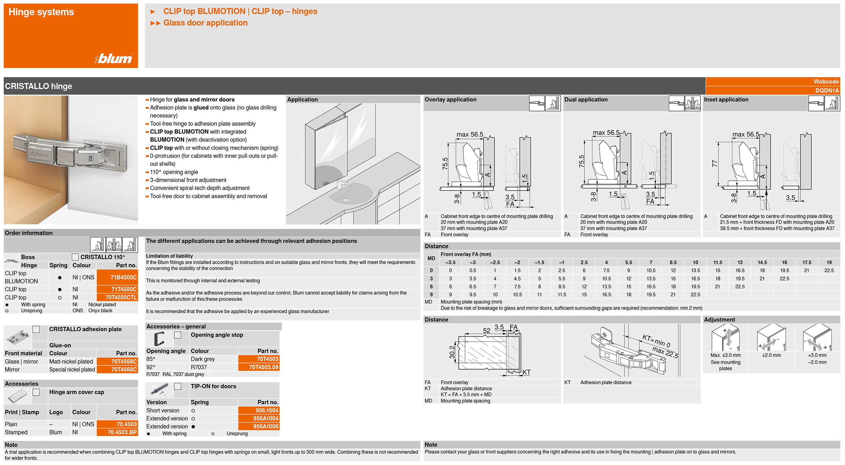 110° 內置緩衝 - CRISTALLO 玻璃門鉸(6分) - CLIP top BLUMOTION Hinge