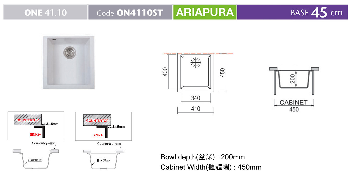 主頁鋅盆/水龍頭(Sink Faucet)花崗石-鋅盆PLADOSON4110ST單鋅盆 ON4110ST