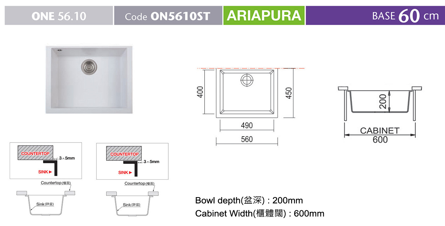 主頁鋅盆/水龍頭(Sink Faucet)花崗石-鋅盆PLADOSON5610ST單鋅盆 ON5610ST