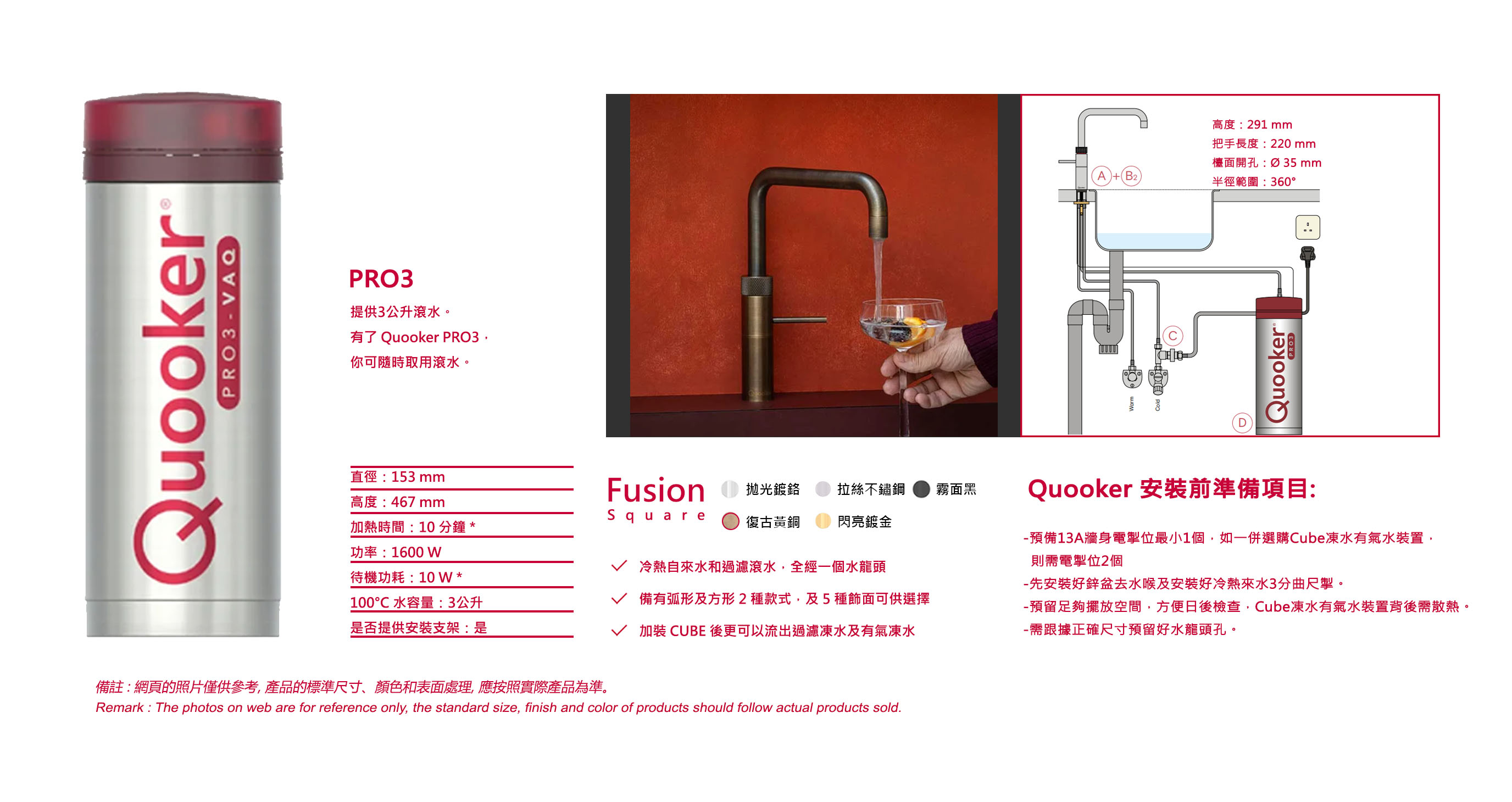PRO3+Fusion Square - (3公升100度熱水+拉絲不銹鋼)