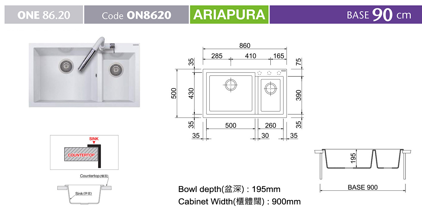 雙鋅盆 ON8620TR - 枱面盆