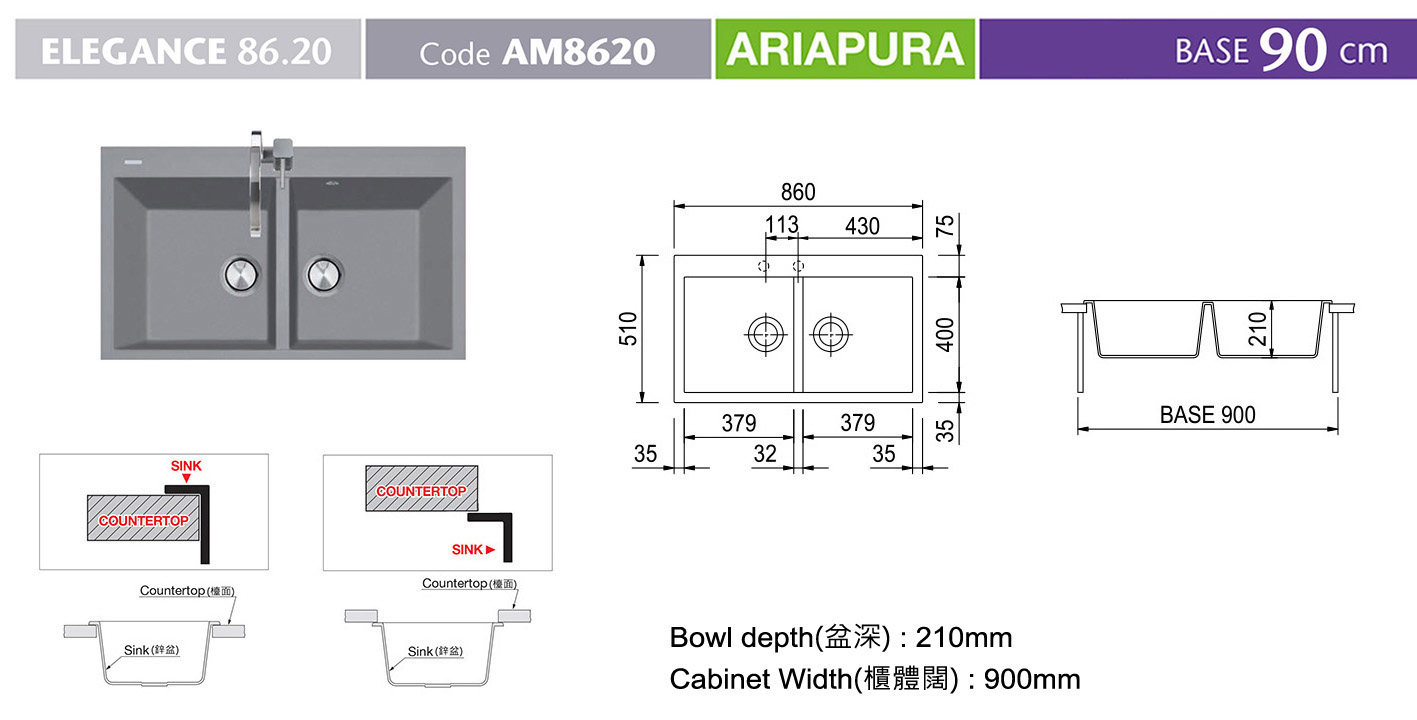 雙鋅盆 AM8620TR - 枱底盆/枱面盆
