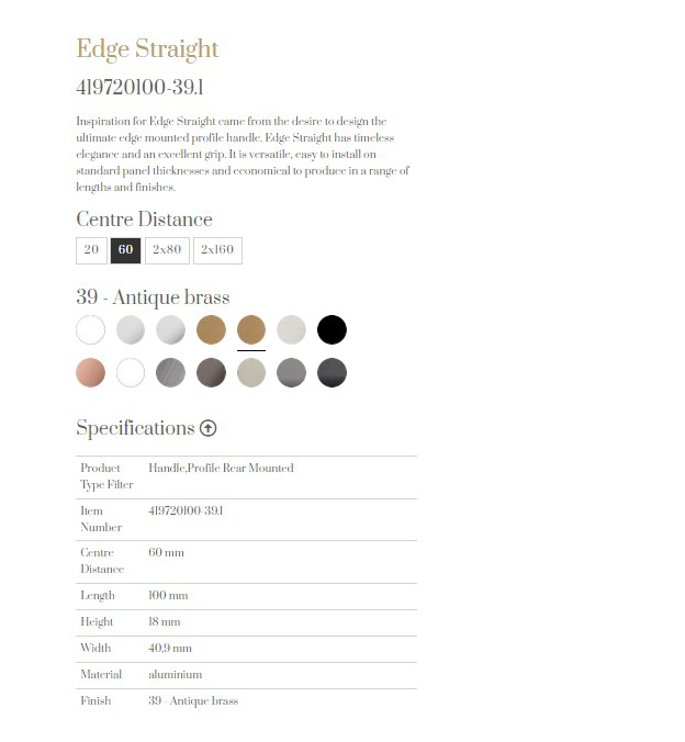 主頁五金配件(Hardware)門板抽手FurnipartEdge Straight門板抽手(Edge Straight)