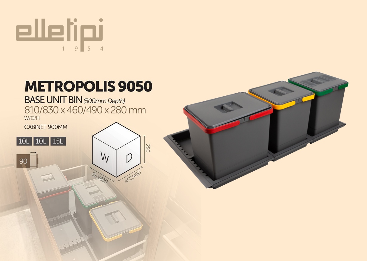 櫃桶式內置垃圾筒 - 10L+10L+15L/ 塑膠 (9050)