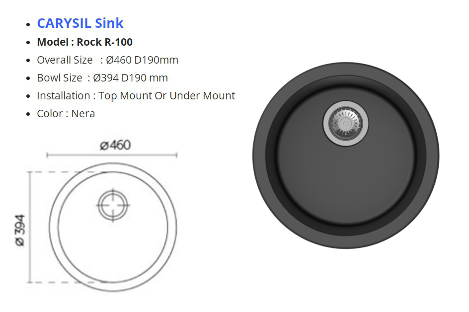 主頁鋅盆/水龍頭(Sink Faucet)花崗石-鋅盆CARYSILROCK - R100圓型單鋅盆 ROCK - R100