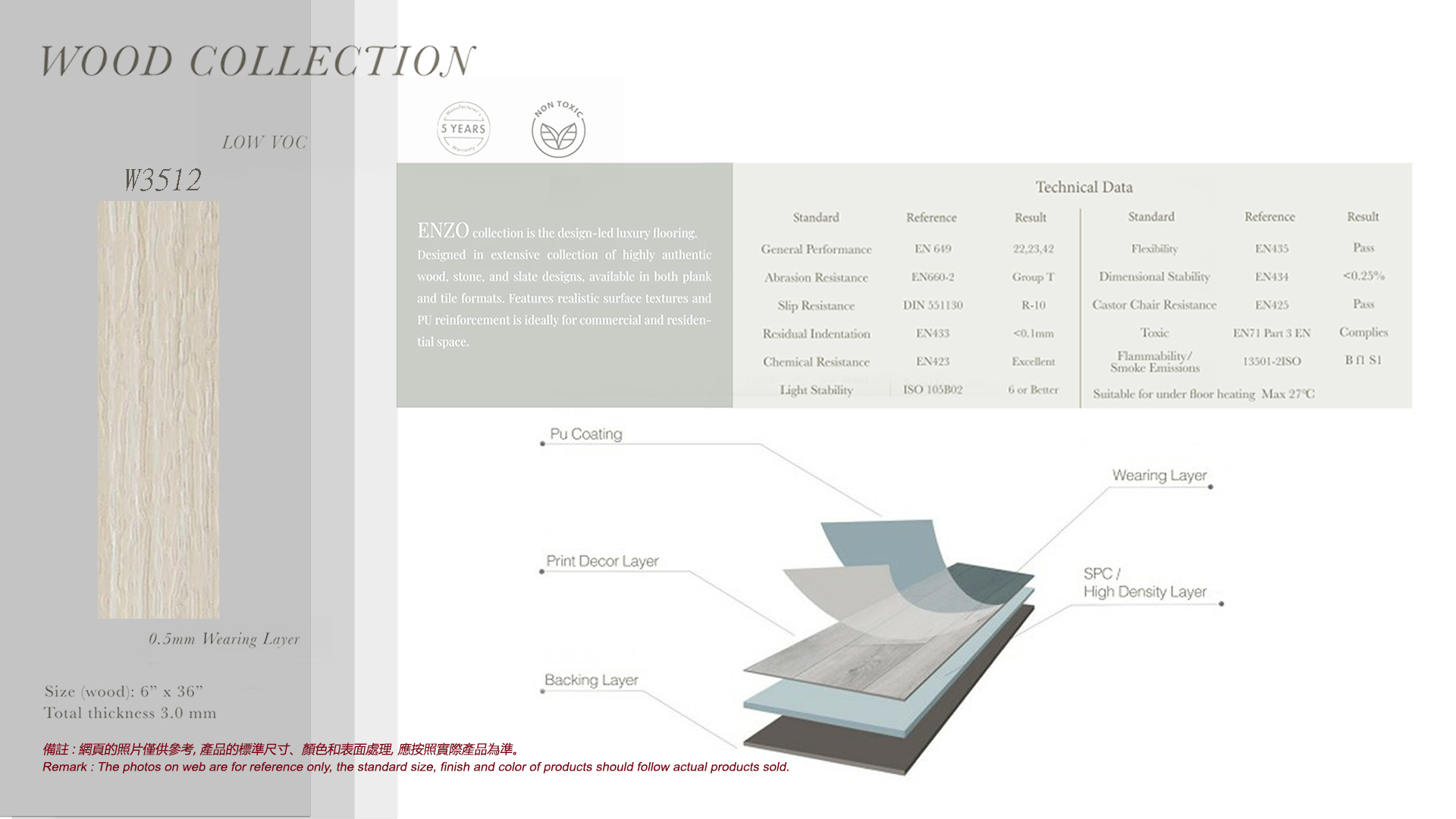 W3512 (LVT地板) - 耐磨層0.5mm (3.0mm厚軟身塑料)