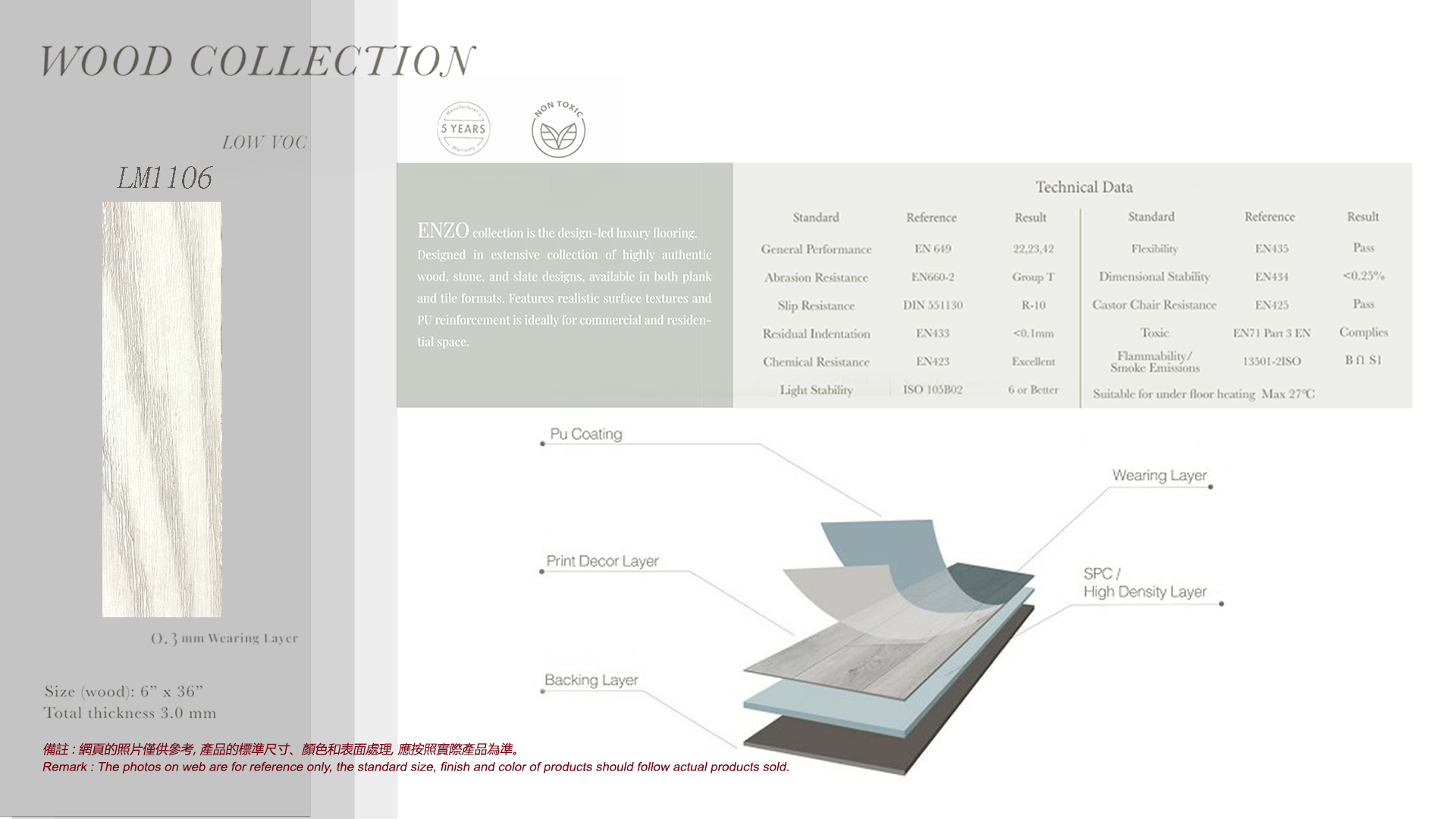 LM1106 (LVT地板) - 耐磨層0.3mm (3.0mm厚軟身塑料)