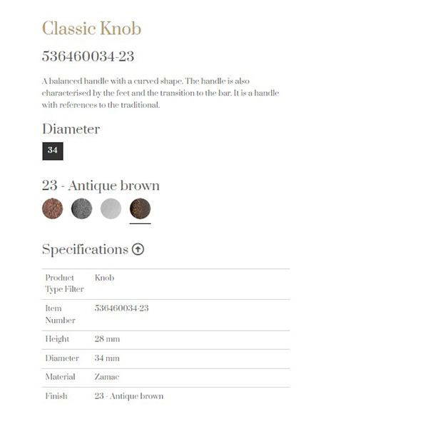 門板抽手Classic Knob - Diameter 34mm / 鋅合金