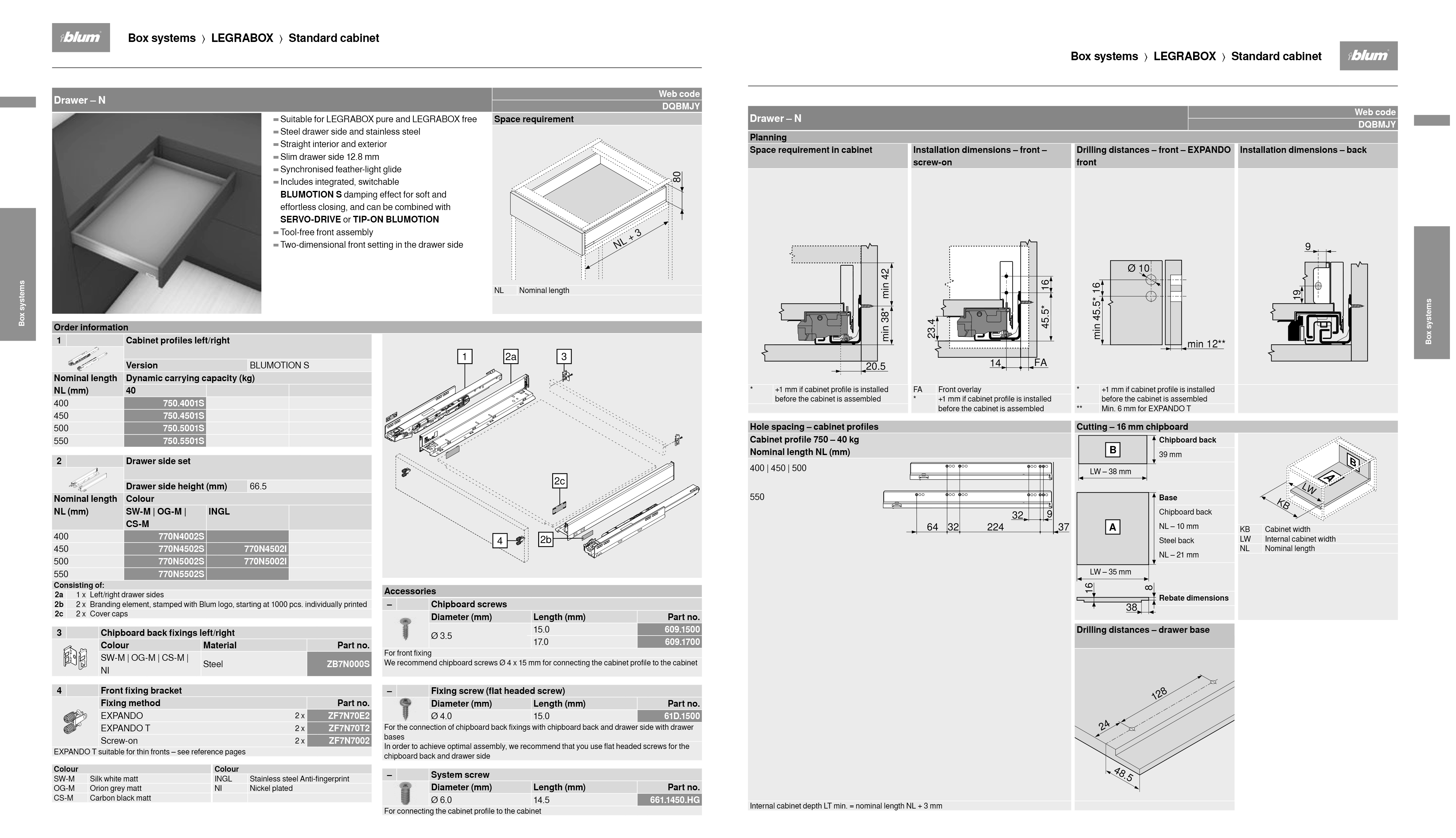 LEGRABOX 緩衝櫃桶趟路 (N高) - 500mm - N Height (40Kg)
