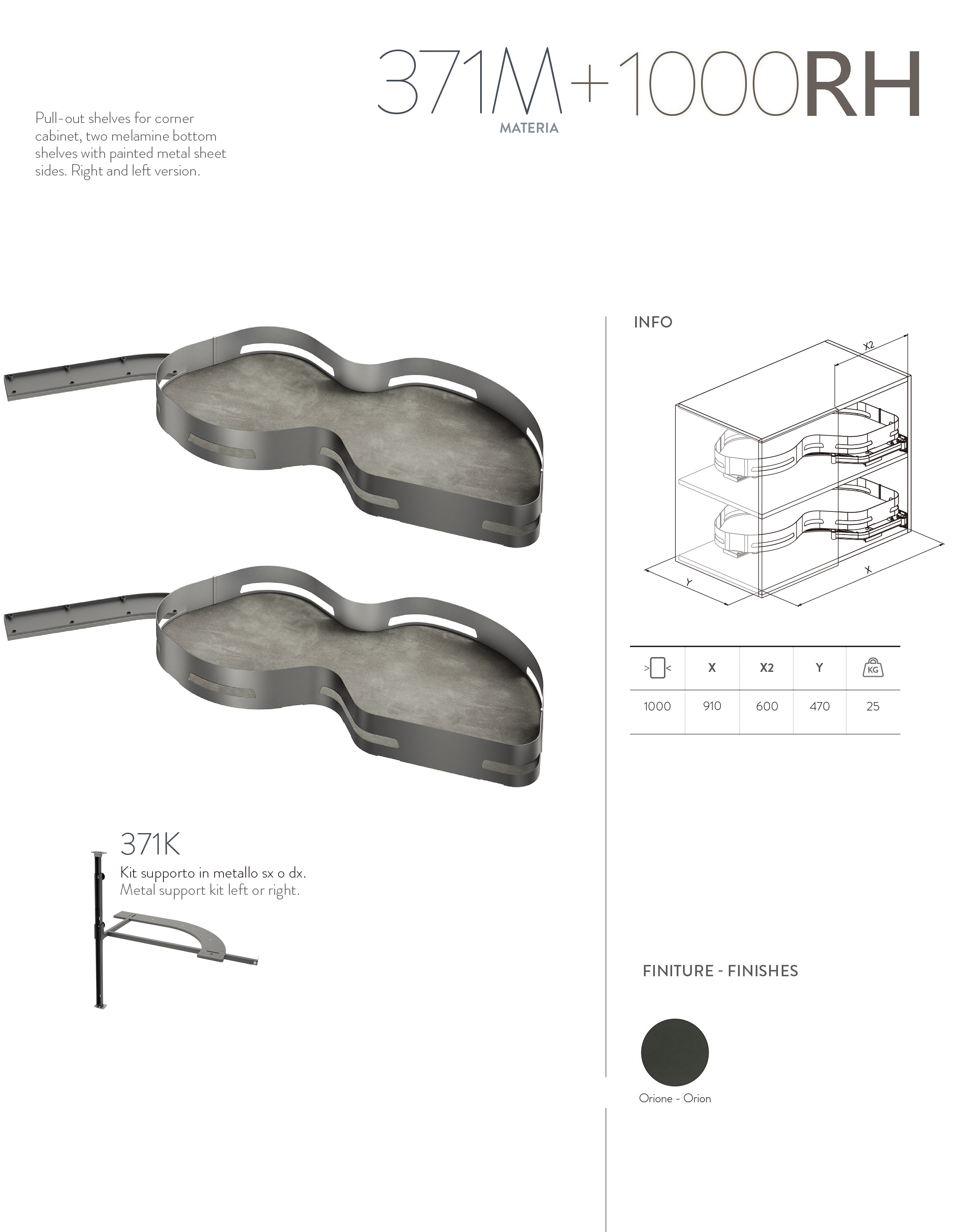 主頁五金配件(Hardware)拉趟架SIGE (Materia)地櫃角位花生籃 371+M地櫃角位花生拉籃371+M1000-RH (右拉出)