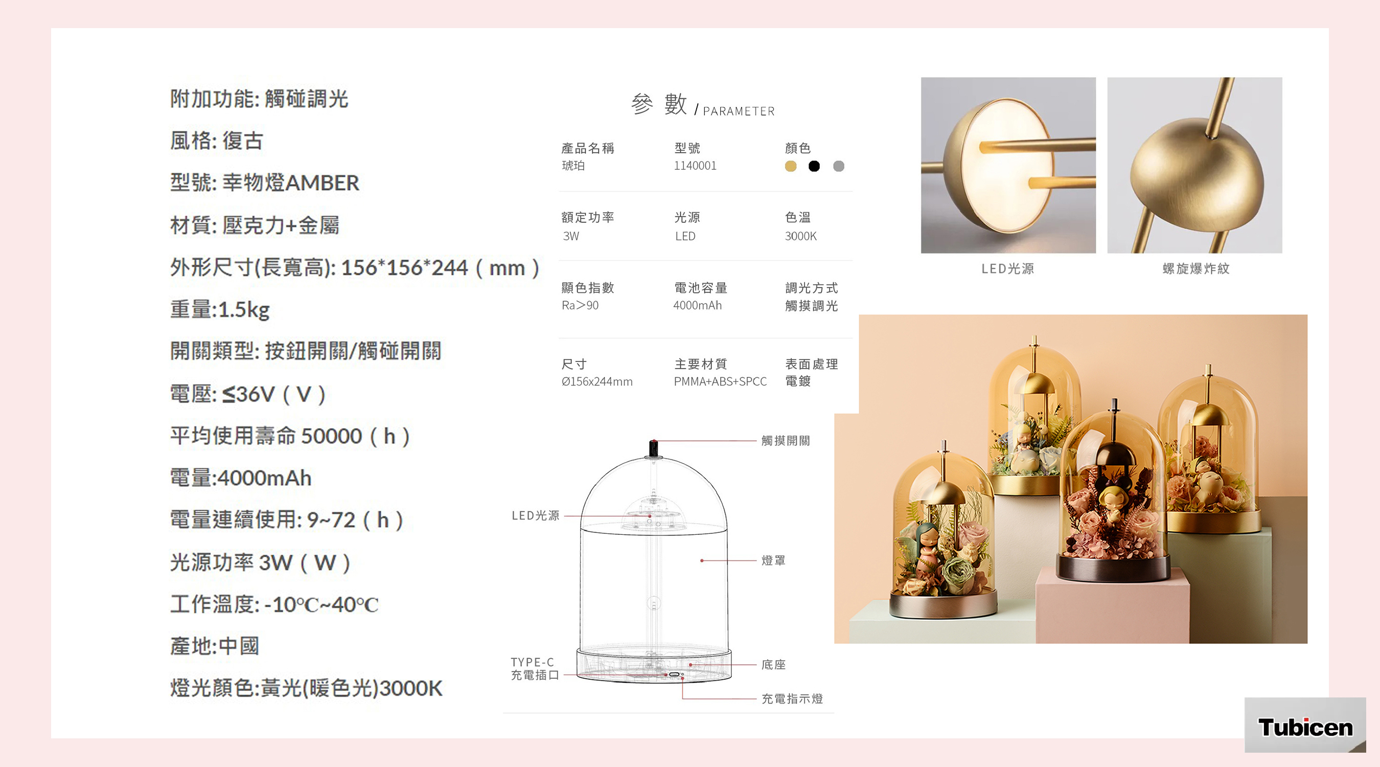 Amber 琥珀 (鎳) - 輕觸調光 , 9-72(h)續航力 , Type C