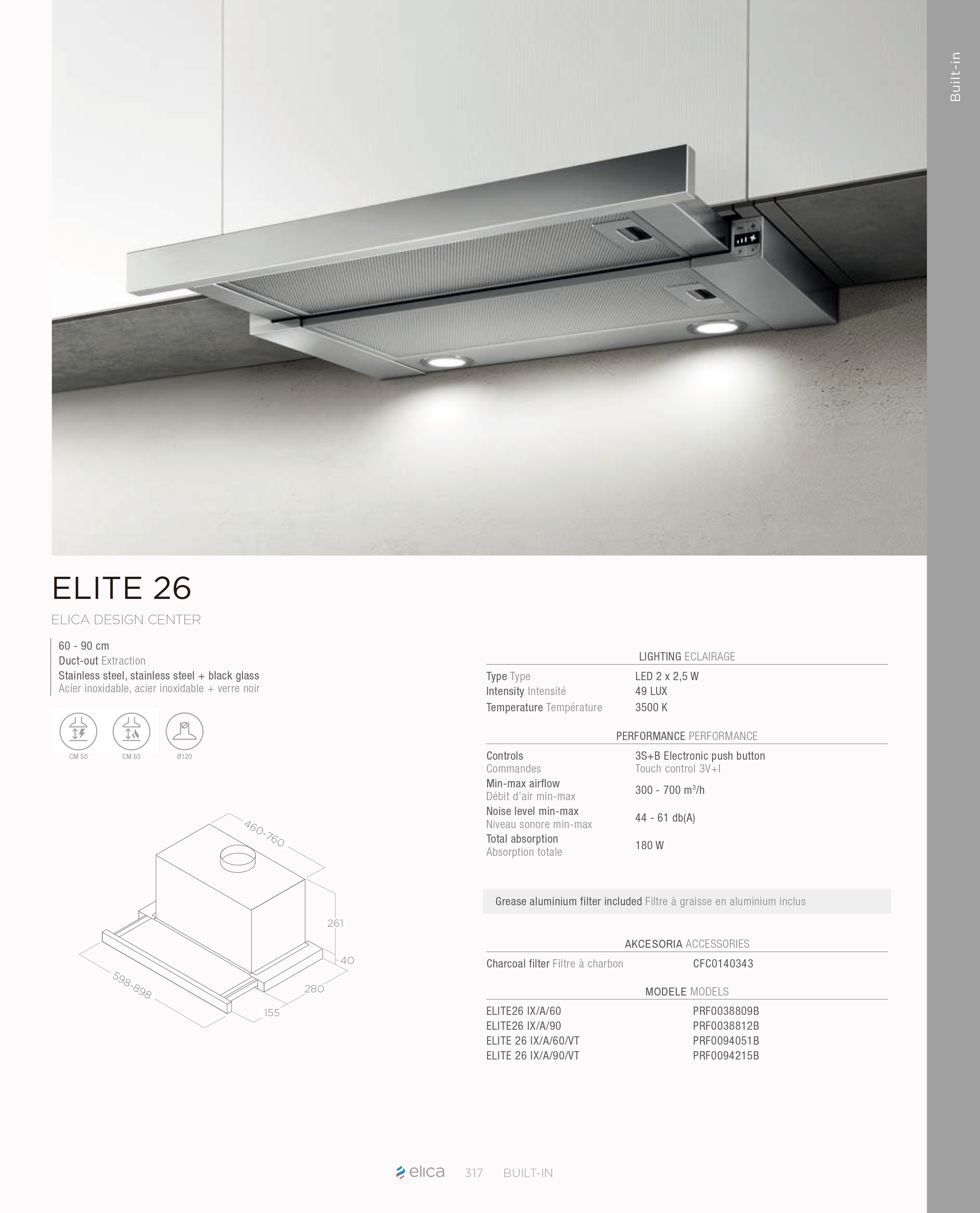 主頁電器(Appliances)油 煙 機Elica嵌入式Elite 26Elite 26 (W)600mm