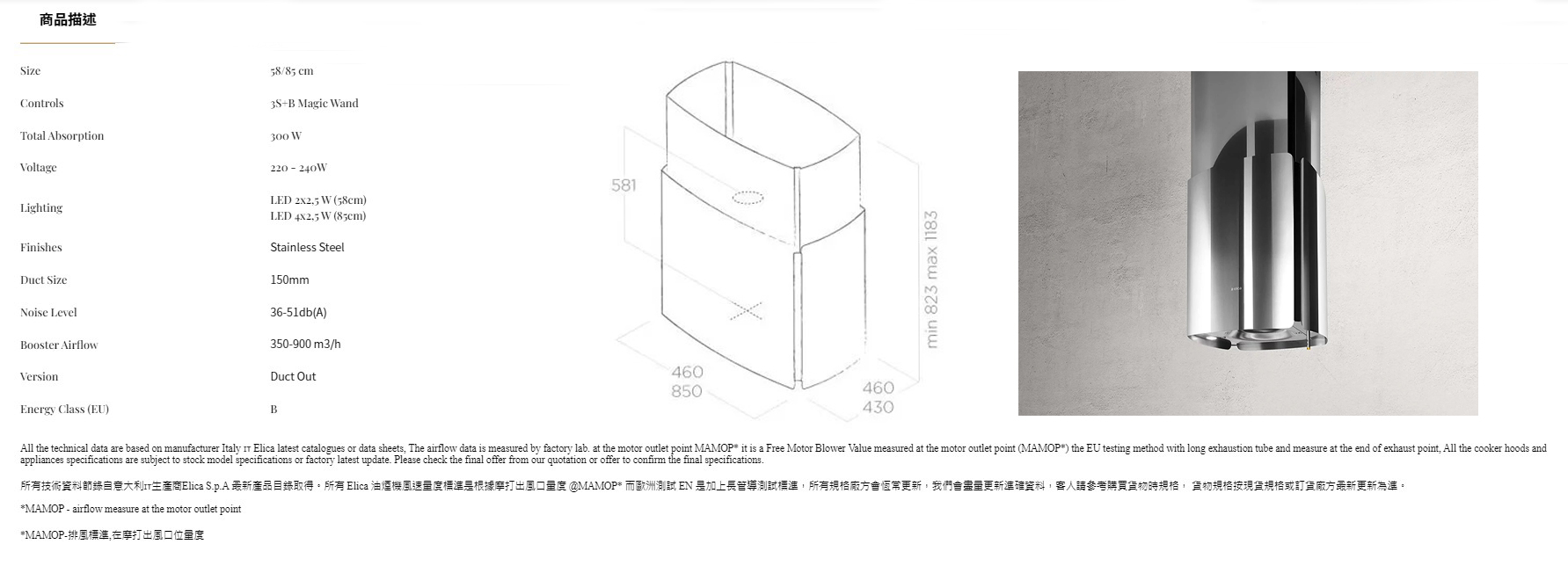 主頁電器(Appliances)油 煙 機Elica島嶼式Chrome
