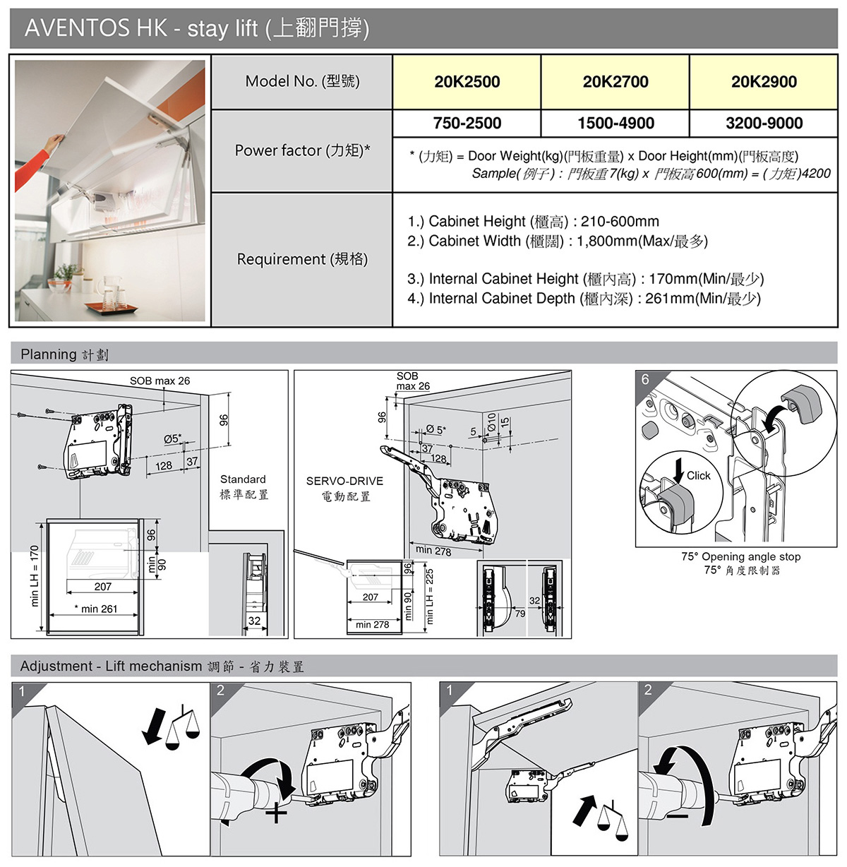 AVENTOS HK 上翻門撐 20K2500 - 20K2500