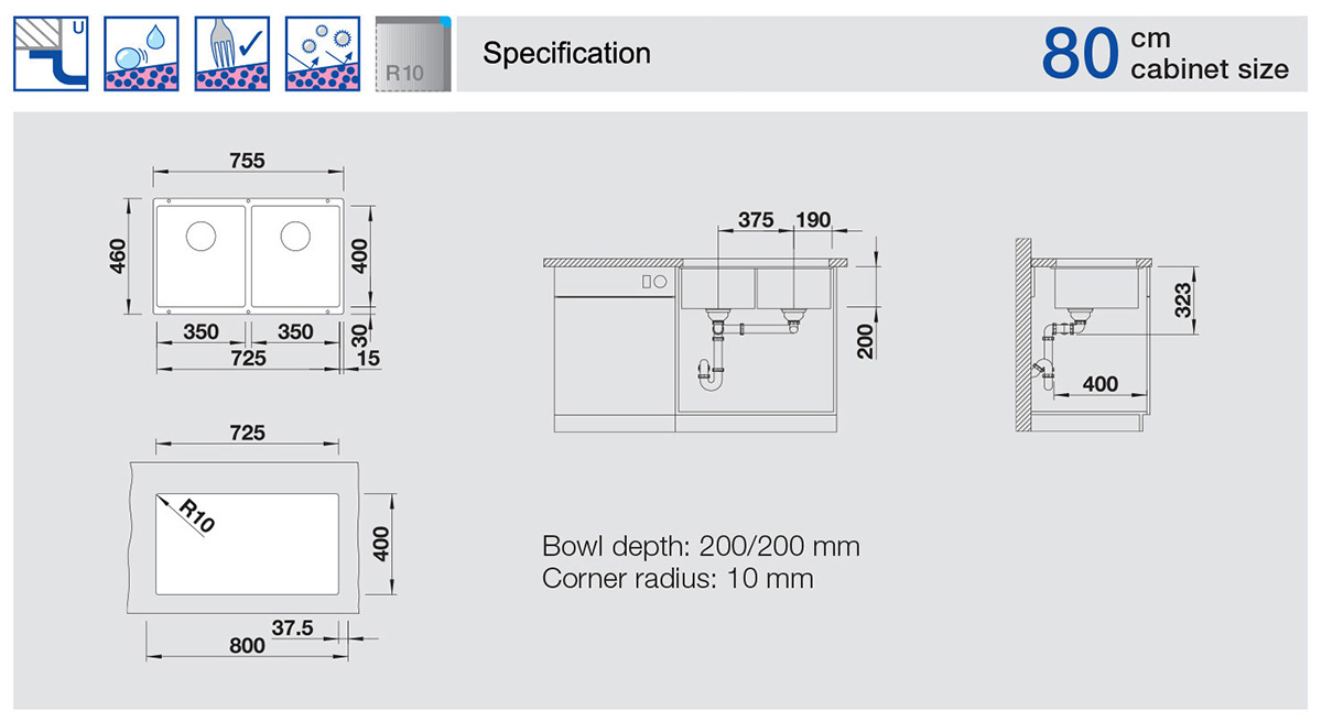 雙鋅盆 SUBLINE 350/350-U - 枱底盆