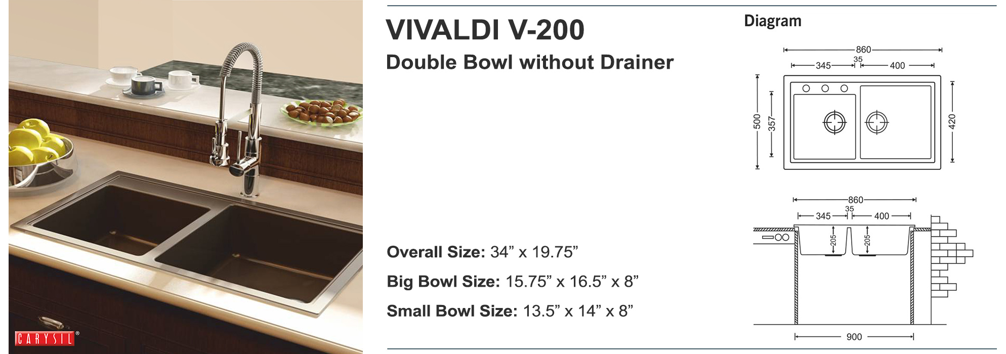 主頁鋅盆/水龍頭(Sink Faucet)花崗石-鋅盆CARYSILVIVALDI - V200雙鋅盆 VIVALDI - V200