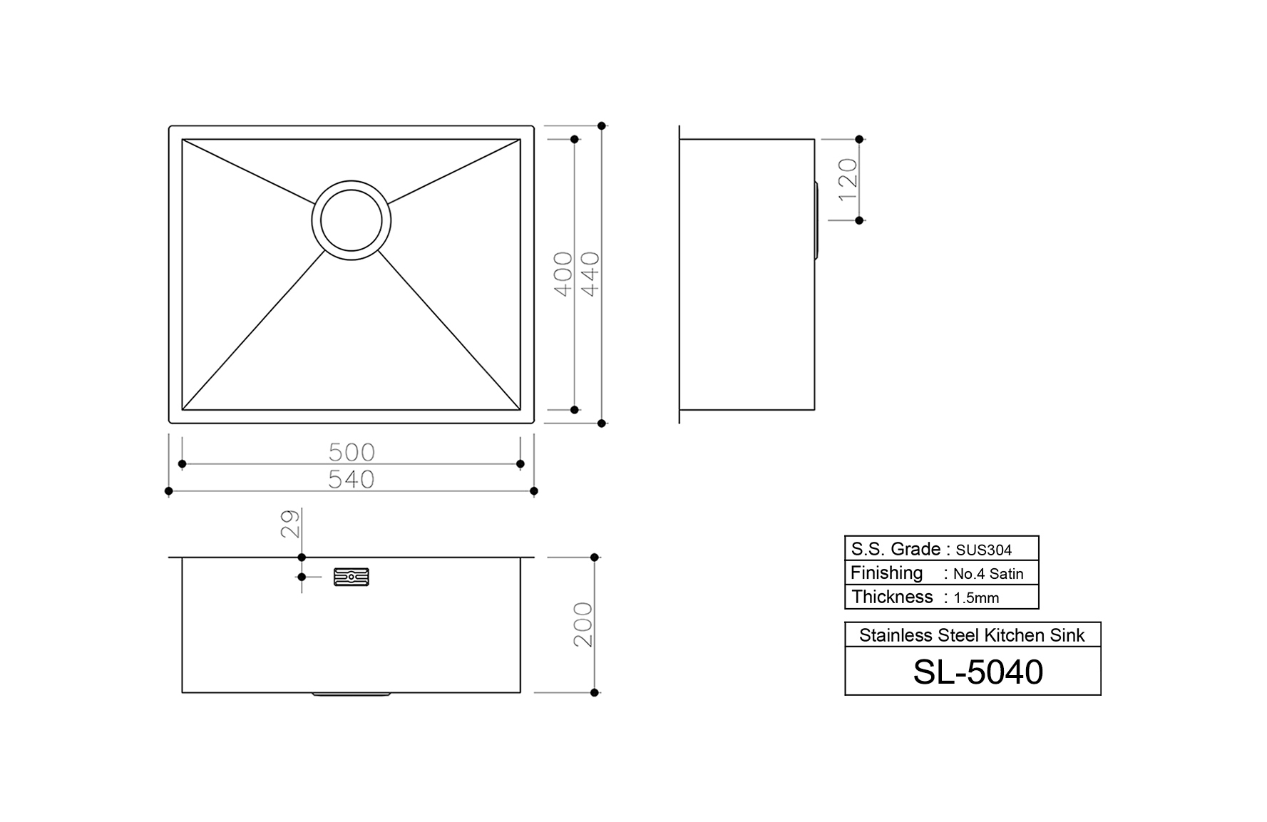 單鋅盆 (方角) SL-5040 - 方角