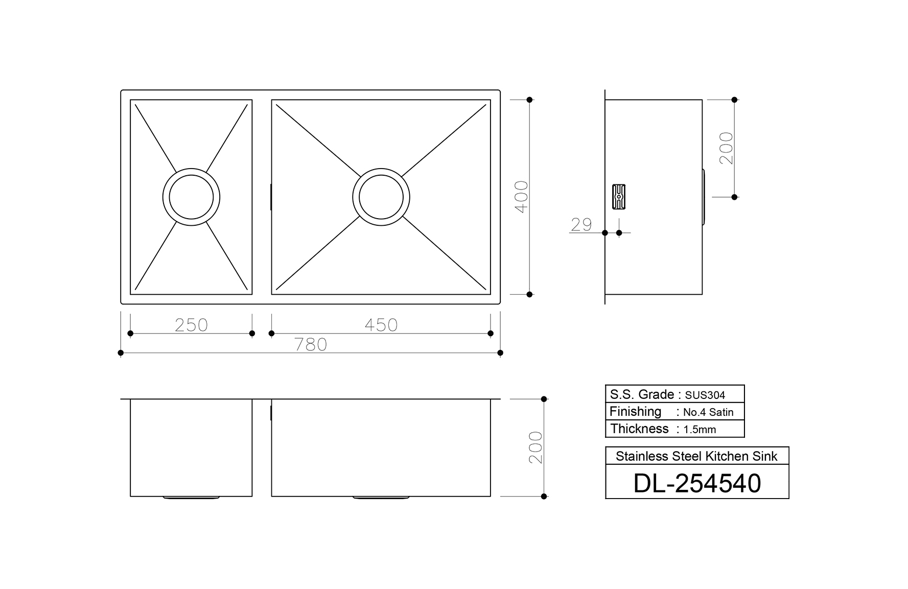 雙鋅盆 (方角) DL-254540 - 方角