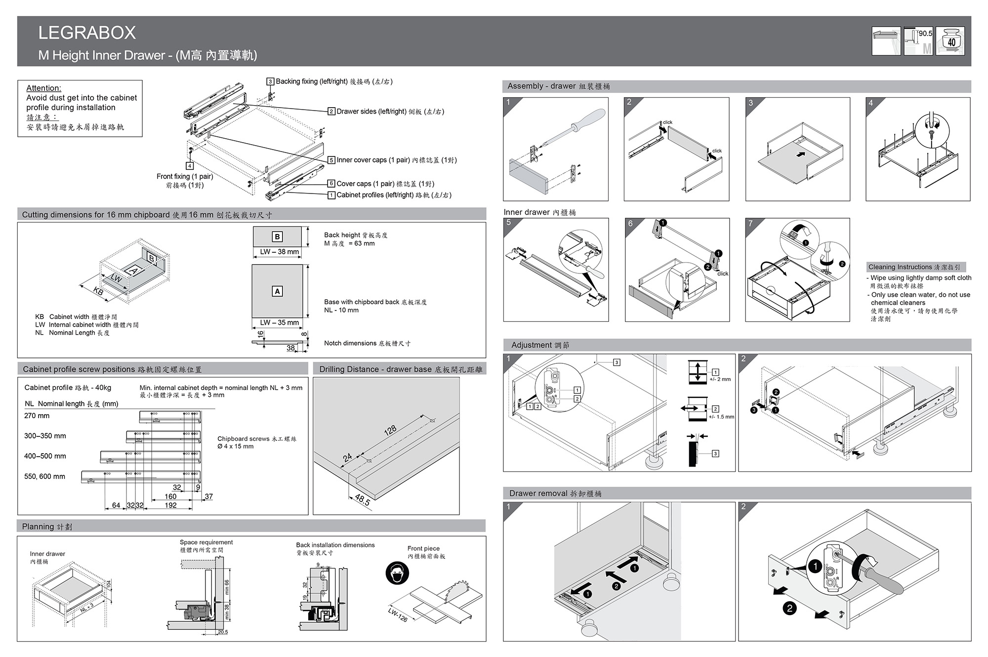 LEGRABOX 緩衝櫃桶趟路 (M高-內置) - 450mm (未包前面板) - M Height Inner (40Kg)