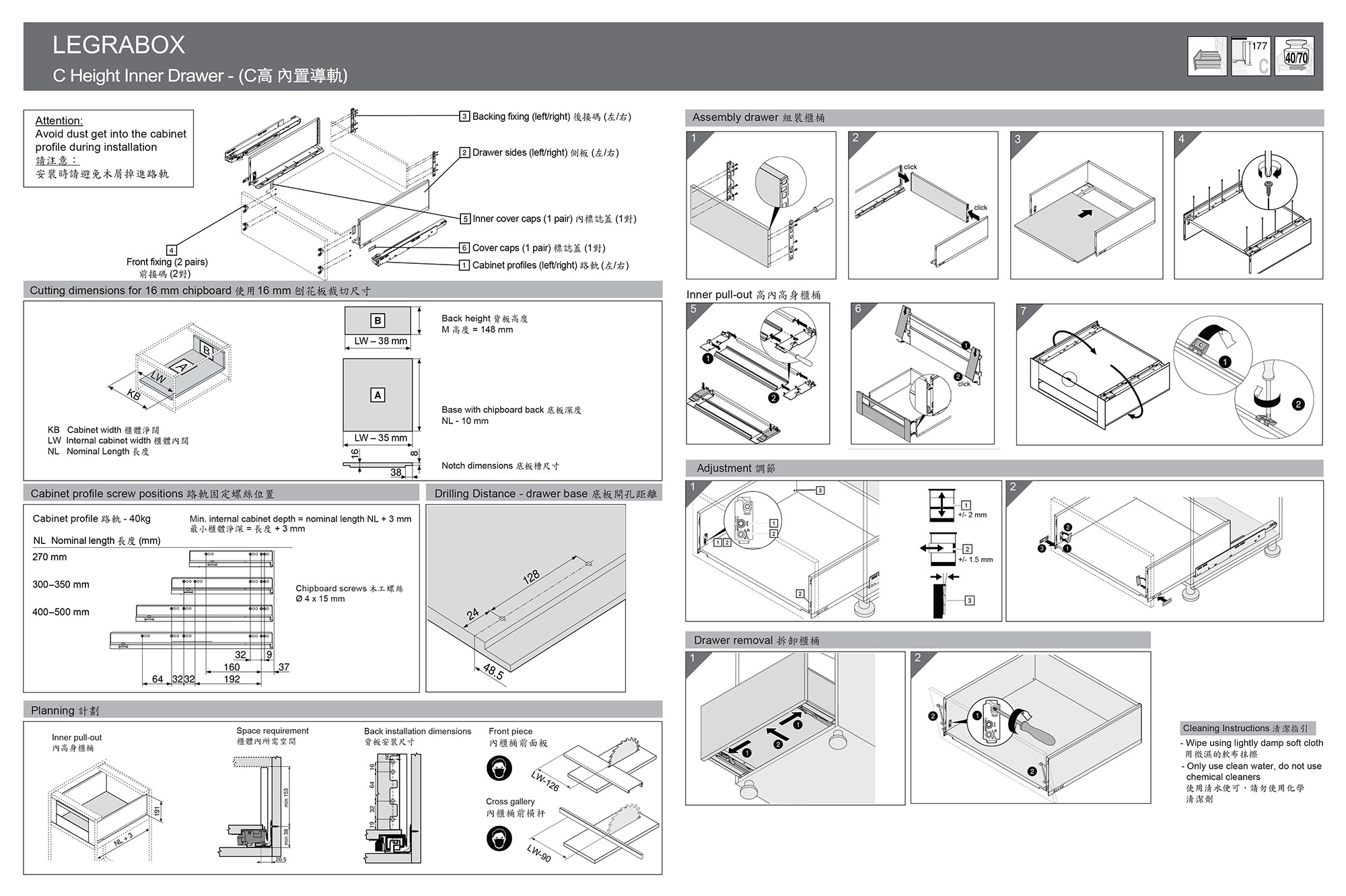 LEGRABOX 緩衝櫃桶趟路 (C高-內置) - 350mm (未包前面板及橫杆) - C Height Inner (40Kg)