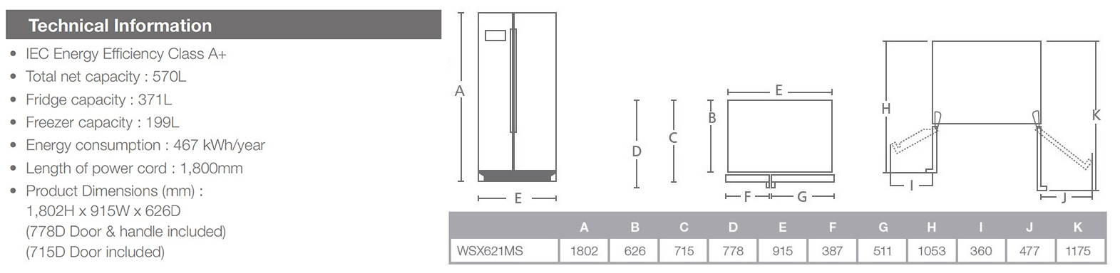 WSX621MS 對門式雪櫃 - Side-By-Side Refrigerator