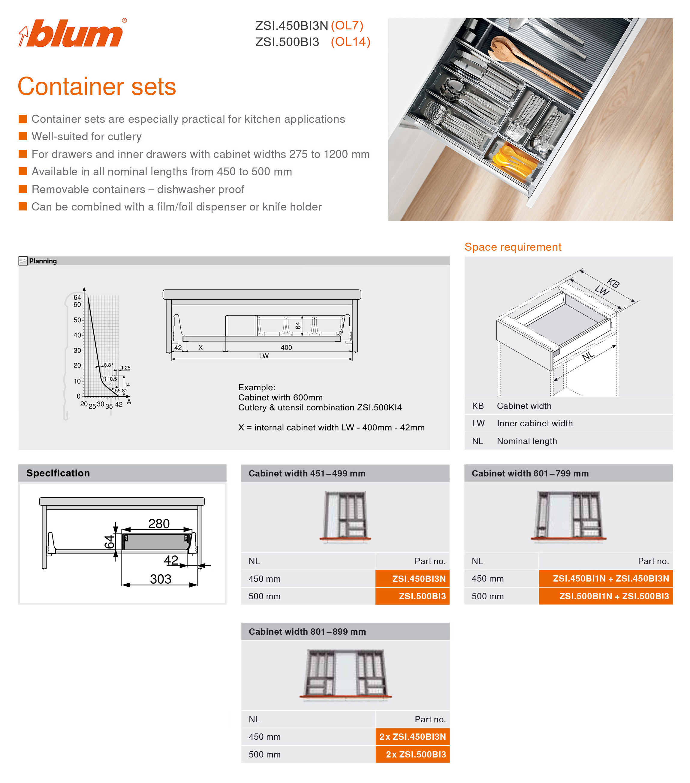 主頁五金配件(Hardware)刀叉盆BLUMOrga-Line 刀叉分隔器 OL7