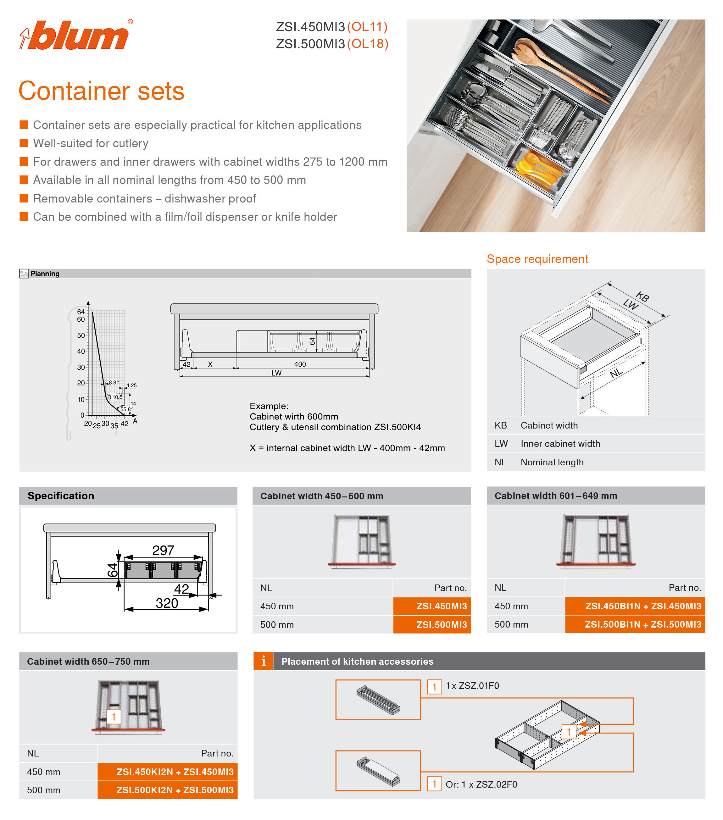 主頁五金配件(Hardware)刀叉盆BLUMOrga-Line 刀叉分隔器 OL18