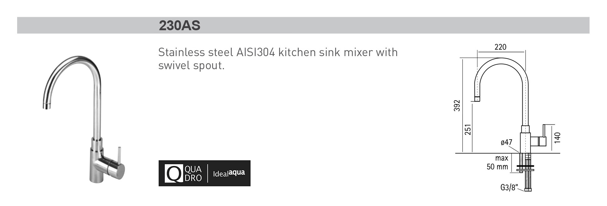 主頁鋅盆/水龍頭(Sink Faucet)廚房-水龍頭QUADRO水龍頭 230AS