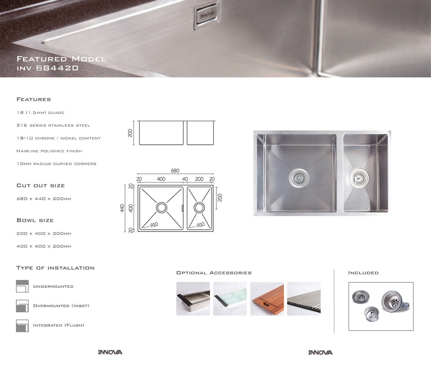 主頁鋅盆/水龍頭(Sink Faucet)不銹鋼-鋅盆INNOVAINNOVA不銹鋼雙鋅盆 INV684420