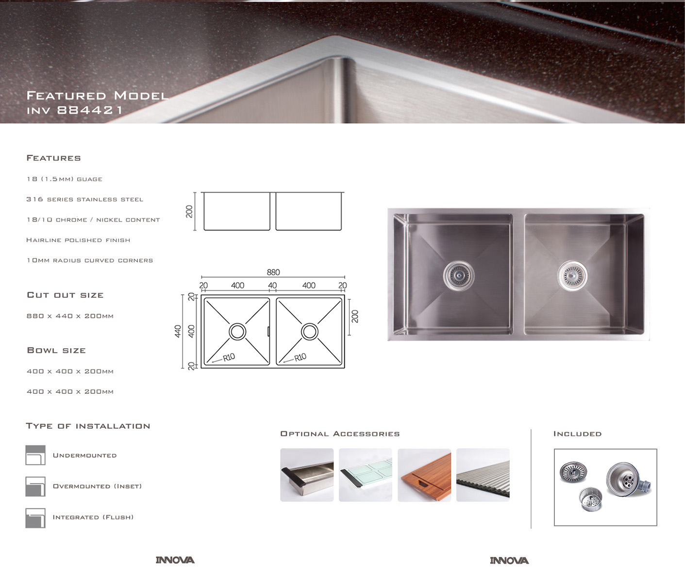 主頁鋅盆/水龍頭(Sink Faucet)不銹鋼-鋅盆INNOVAINNOVA不銹鋼雙鋅盆 INV884421