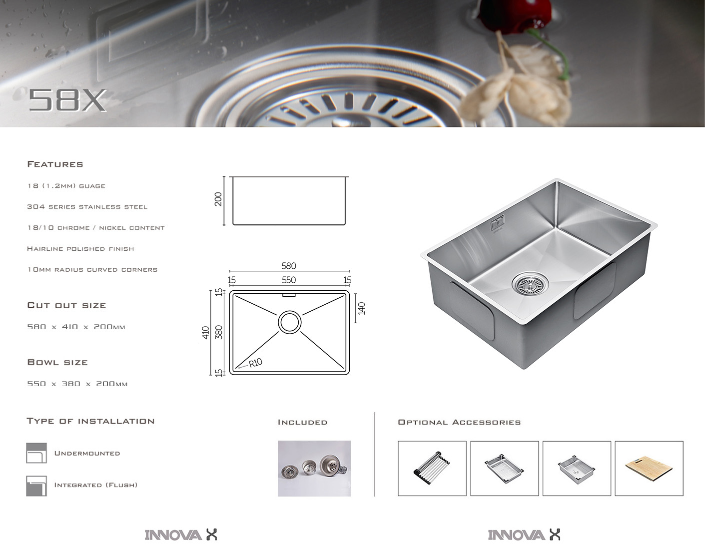 主頁鋅盆/水龍頭(Sink Faucet)不銹鋼-鋅盆INNOVAINNOVA X不銹鋼單鋅盆 58X