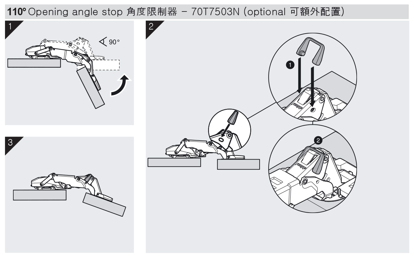 主頁五金配件(Hardware)門鉸155° 內置緩衝平行-門鉸155° 門鉸角度限制器(110°)